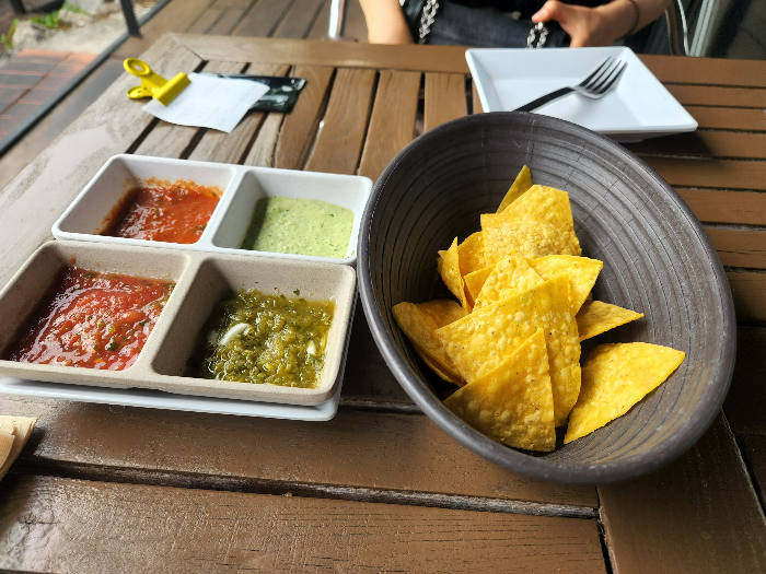 자리에 앉으면 나쵸와 4가지 소스들은 기본으로 세팅해주세요.